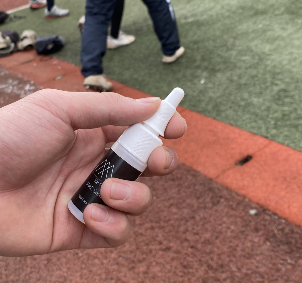 塗ってすぐに練習ができたり、試合ができます。だから直前に塗ってスポーツでの「乾燥による肌荒れや爪割れ」を予防し爪の弾力を守るものを開発しました。